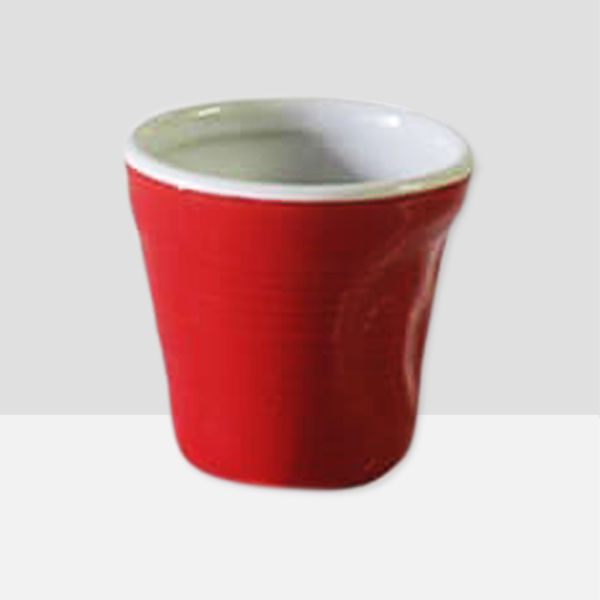 Fashioned with a “squeezing” effect that mimics paper cups; made of fine porcelain and with an ergonomic grip, take up a totally new look for a coffee cup, modern and funny, with the possibility to use it in a thousand different ways.
